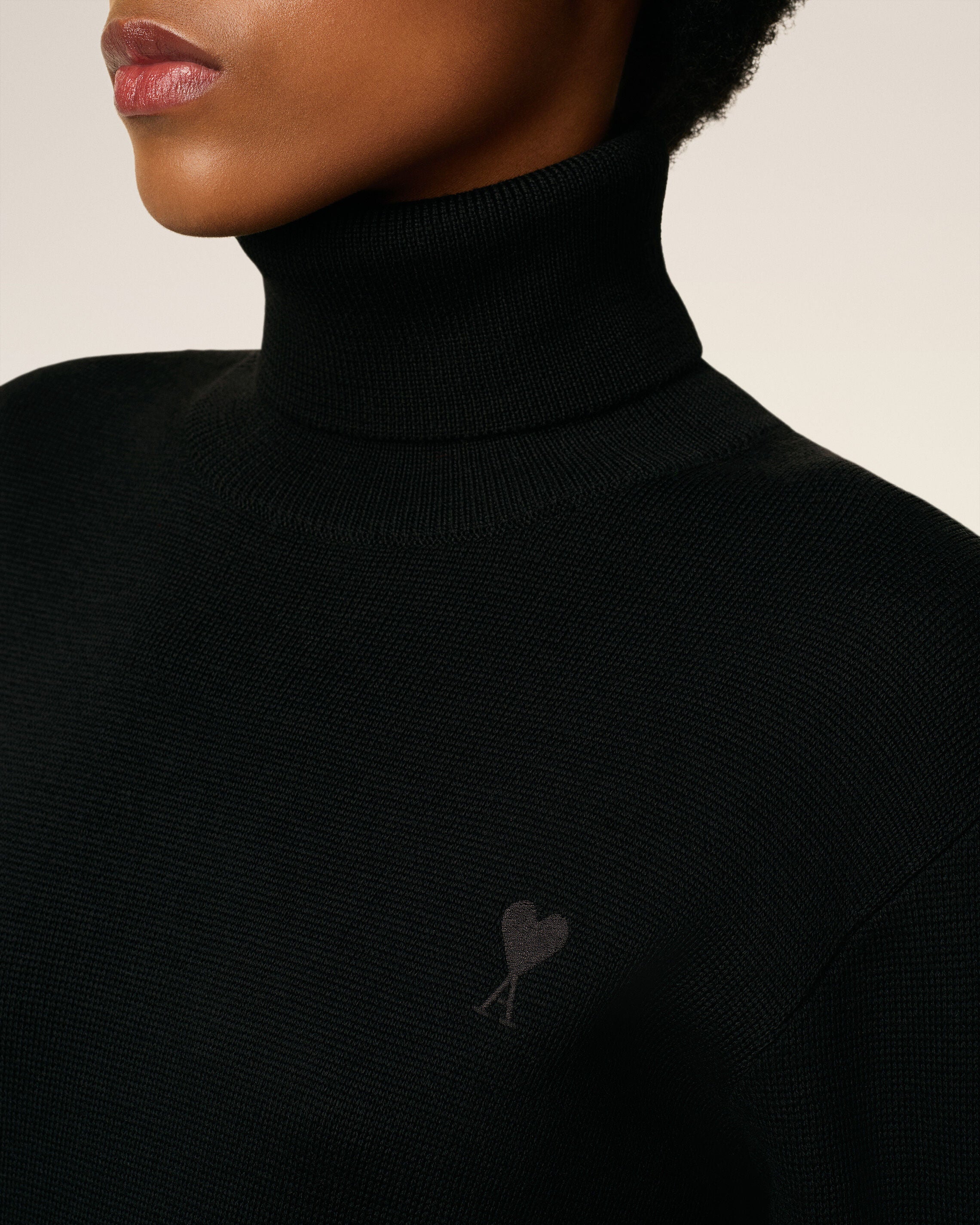 BLACK/BLACK Black Wool Ami De Coeur Turtle Neck Sweater | AMI PARIS