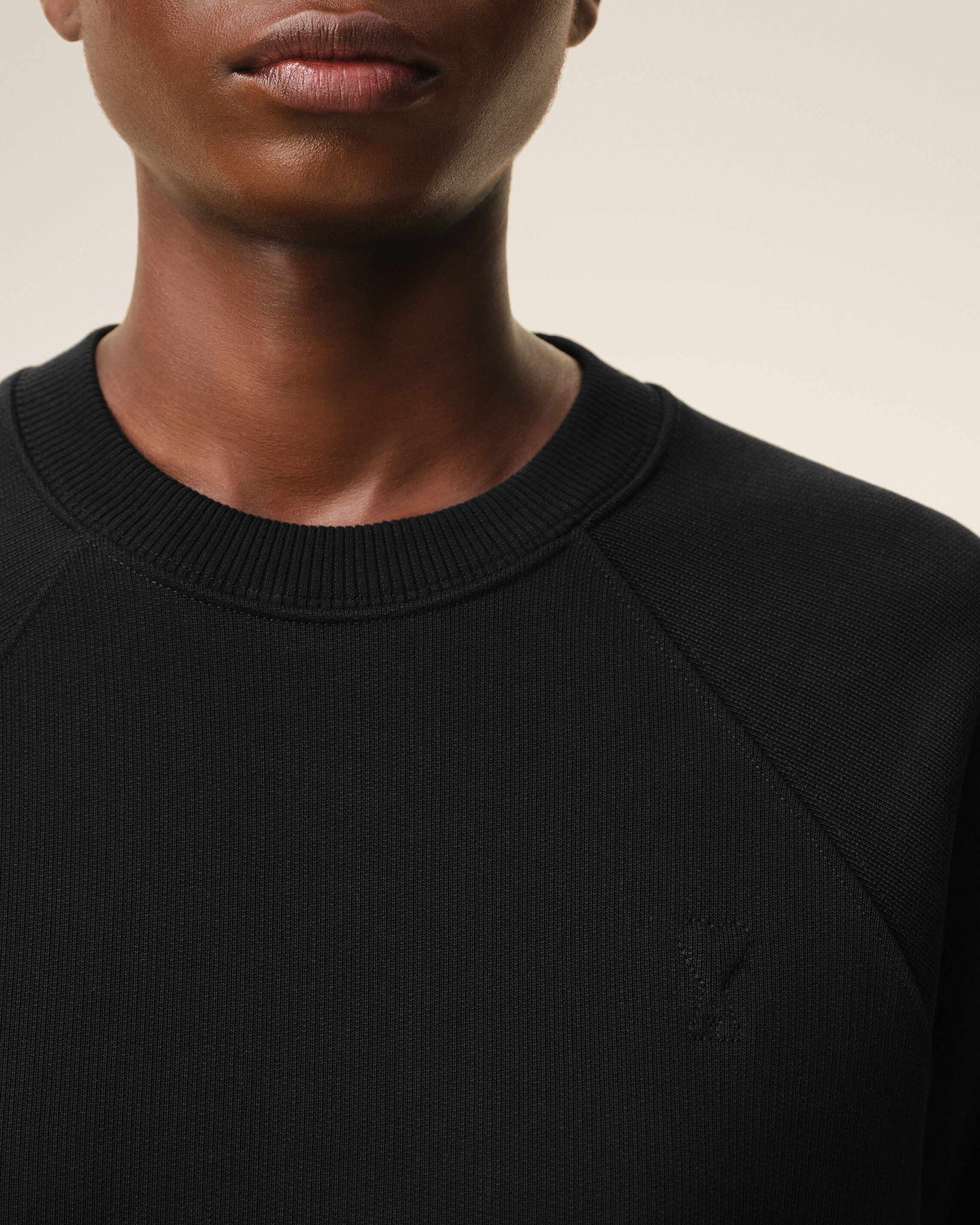 Tonal Ami embroidery under back neckline