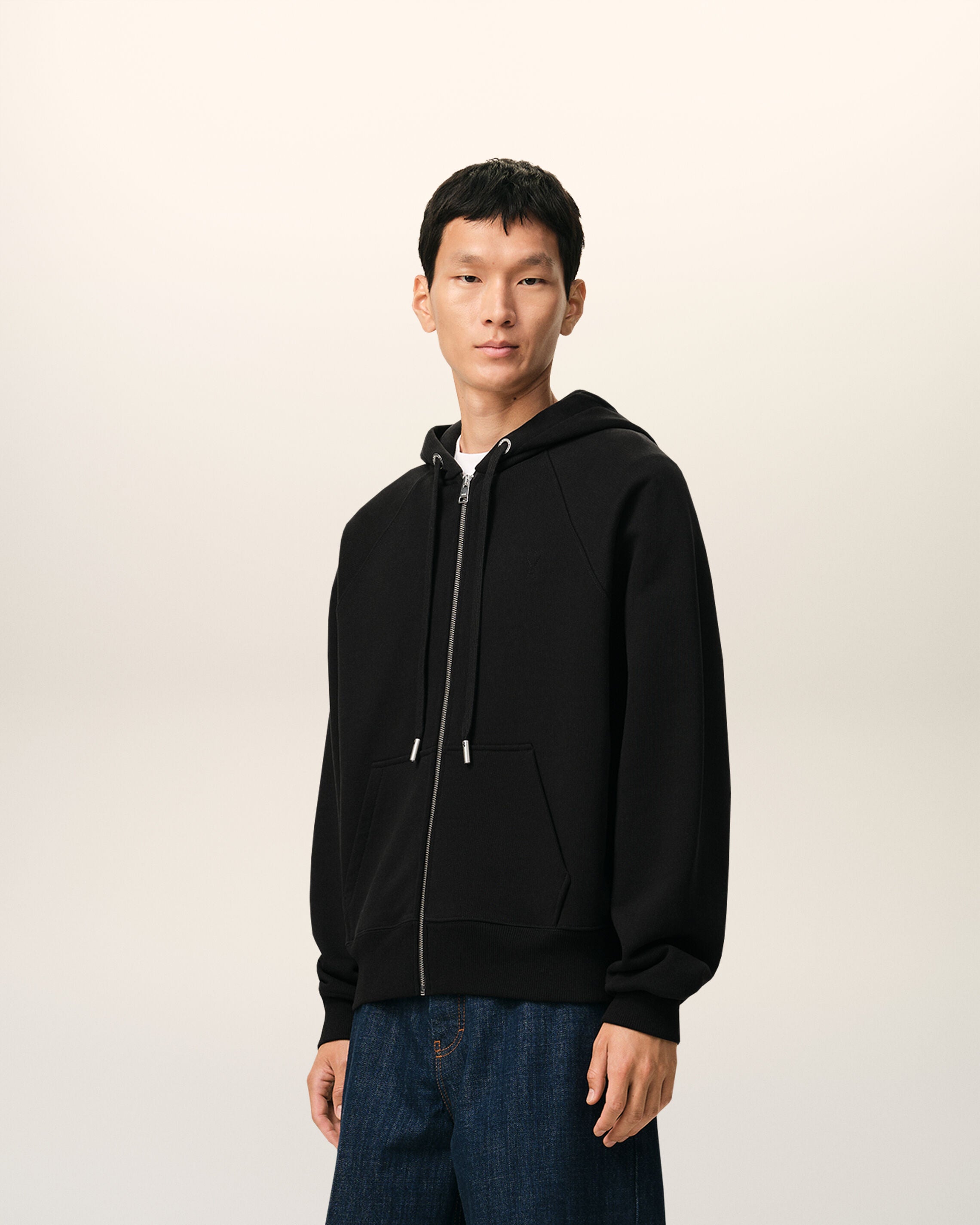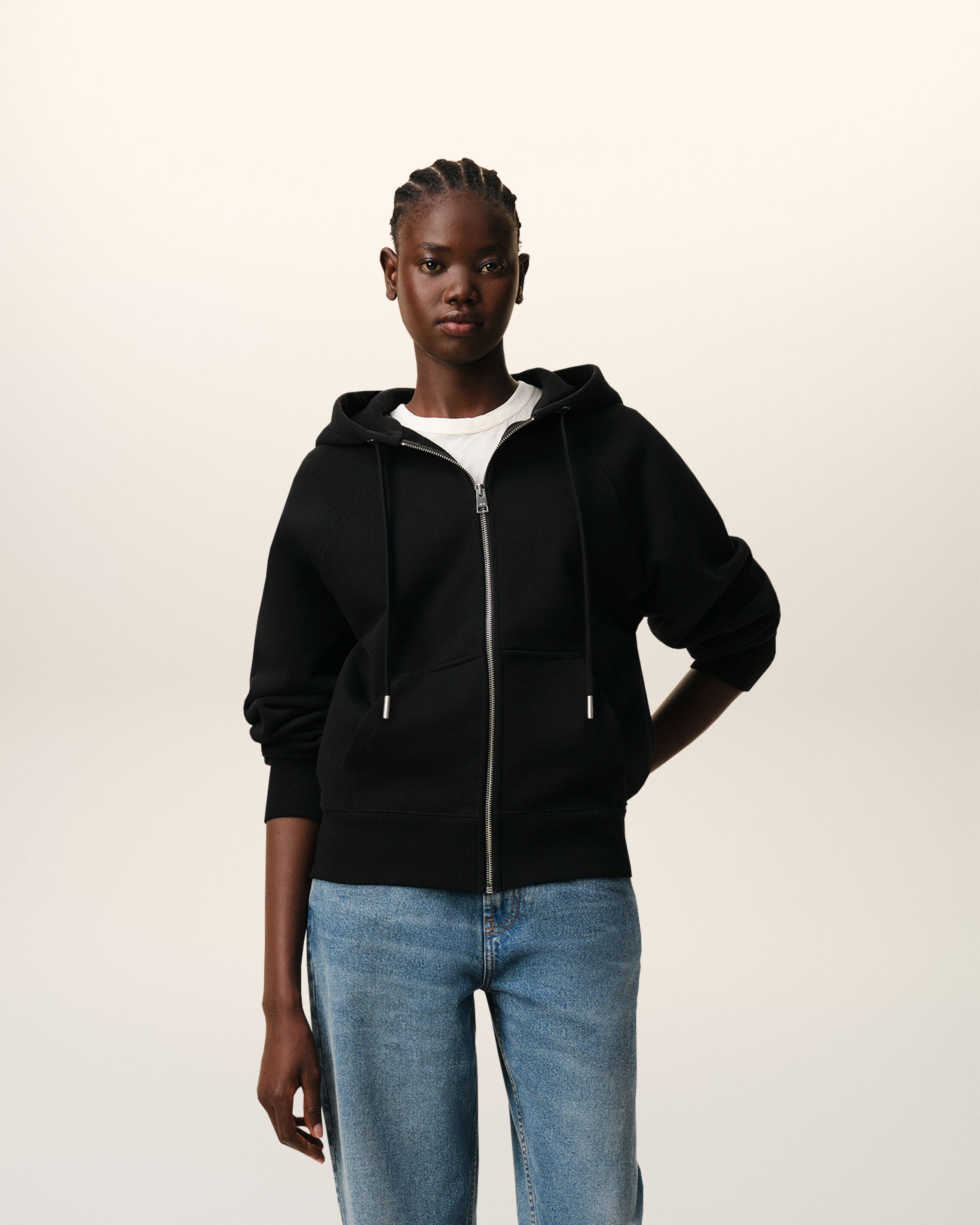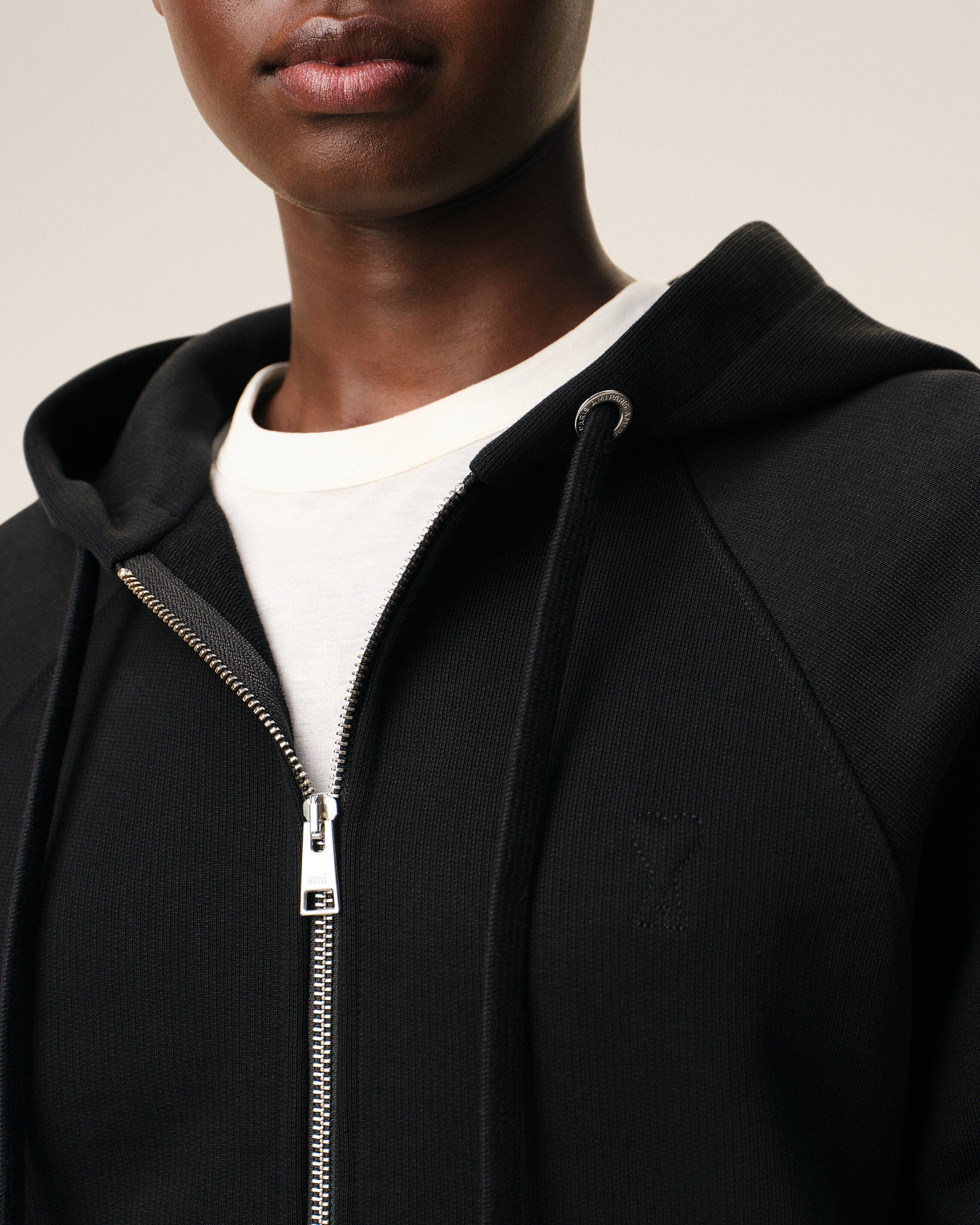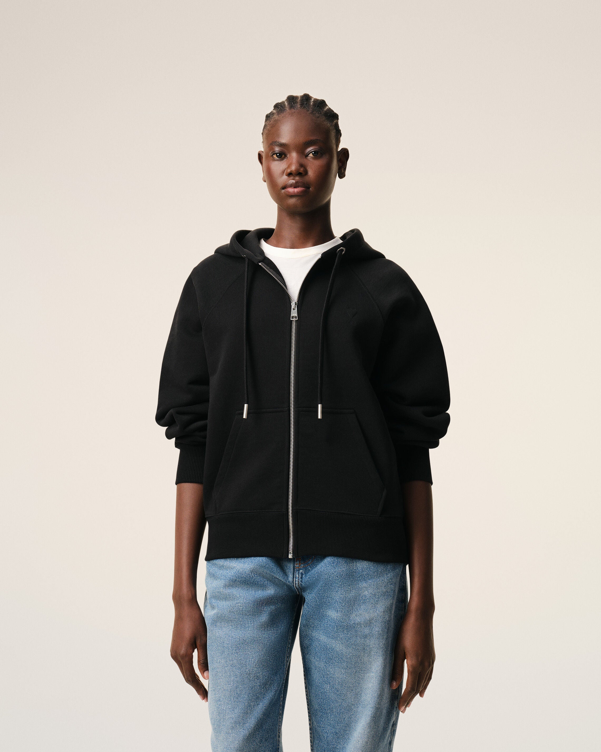 Ami de Coeur zipped hoodie in heavy loopback cotton fleece.