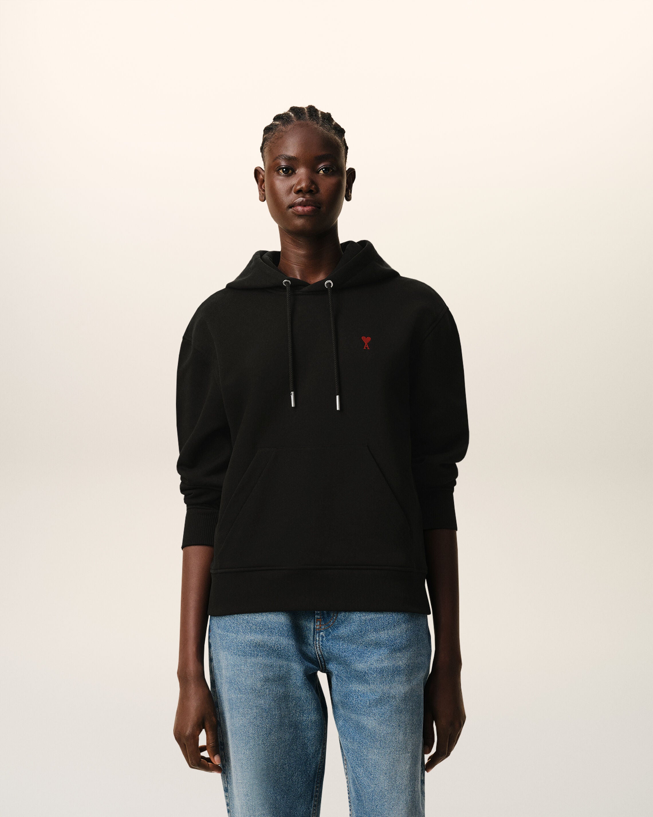 BLACK Black Cotton Ami De Coeur Hoodie | AMI PARIS