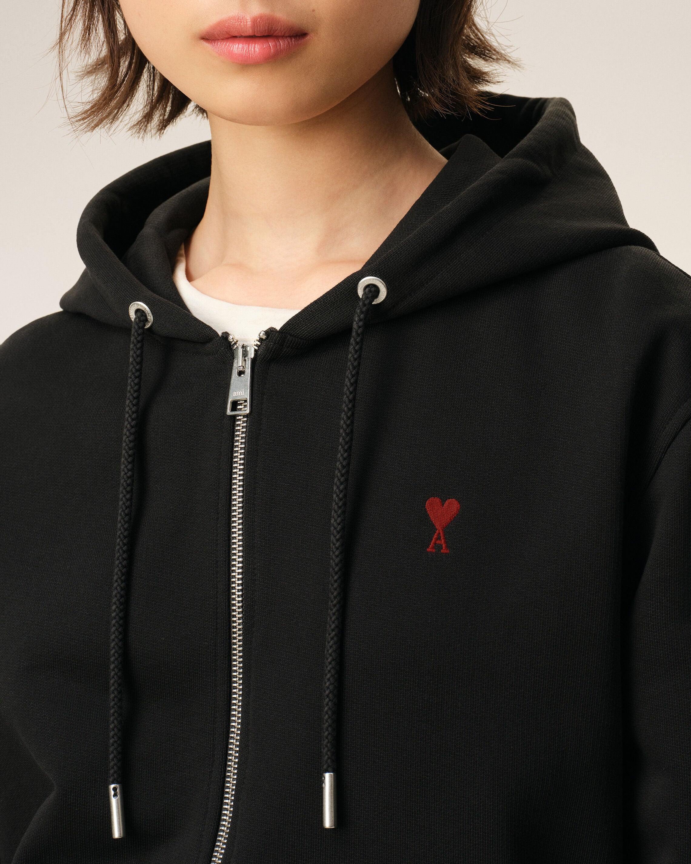 Zipped Ami de Coeur hoodie in loopback organic cotton fleece.