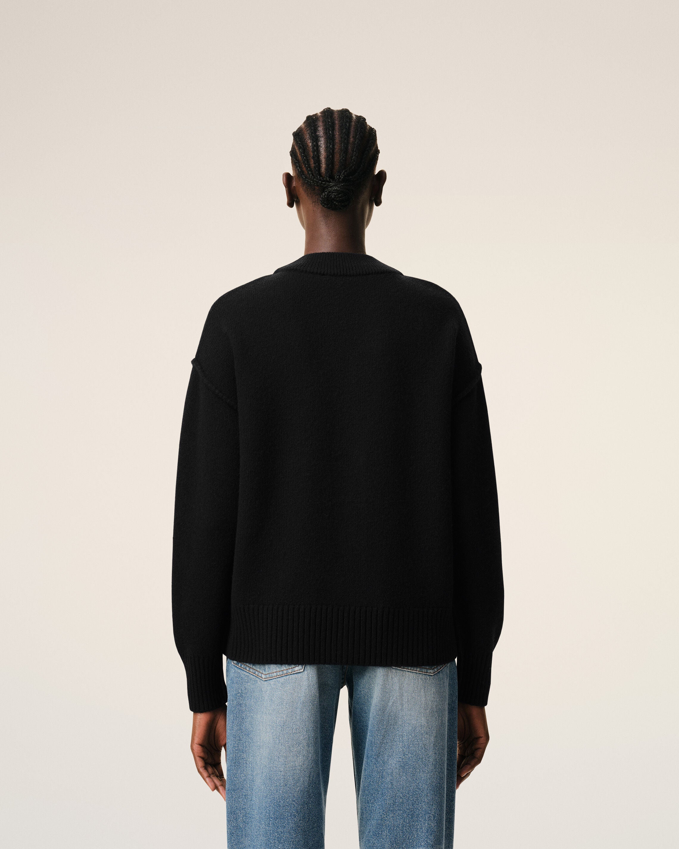 BLACK/BLACK Black Wool Ami De Coeur Crewneck Sweater | AMI PARIS