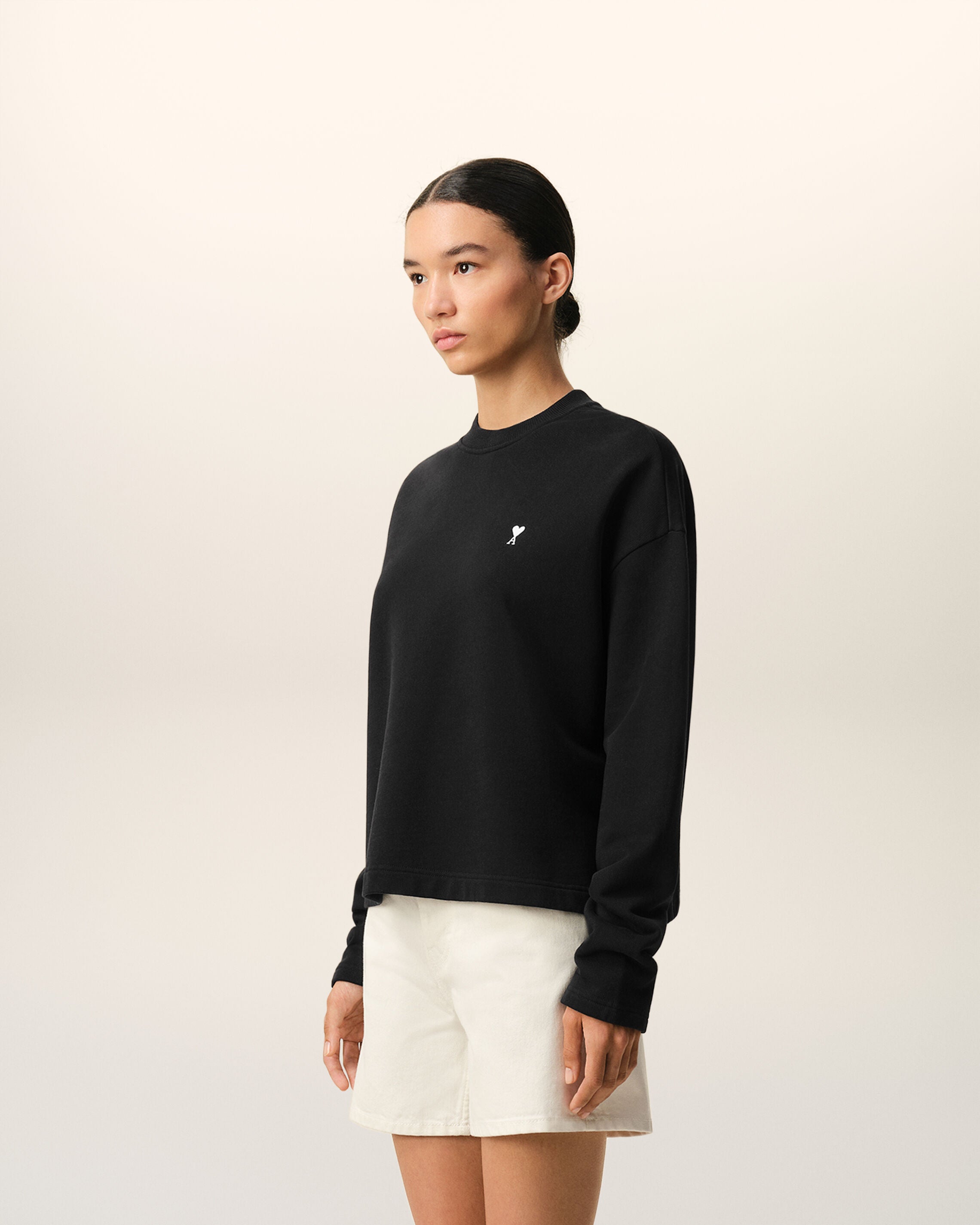 BLACK/WHITE CREAM Black Cotton Ami De Coeur Cropped Sweatshirt | Ami Paris