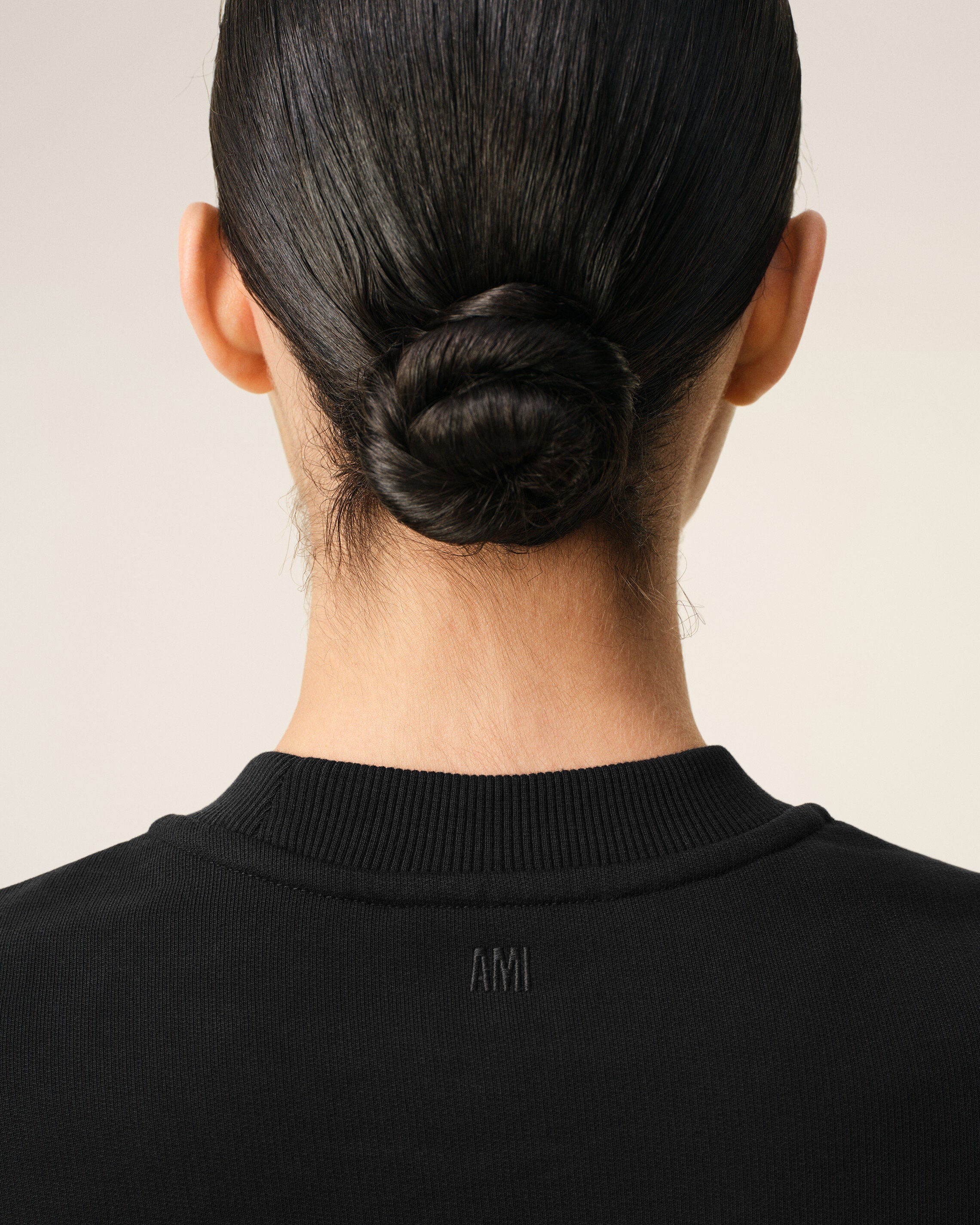 Tonal Ami embroidery under back neckline