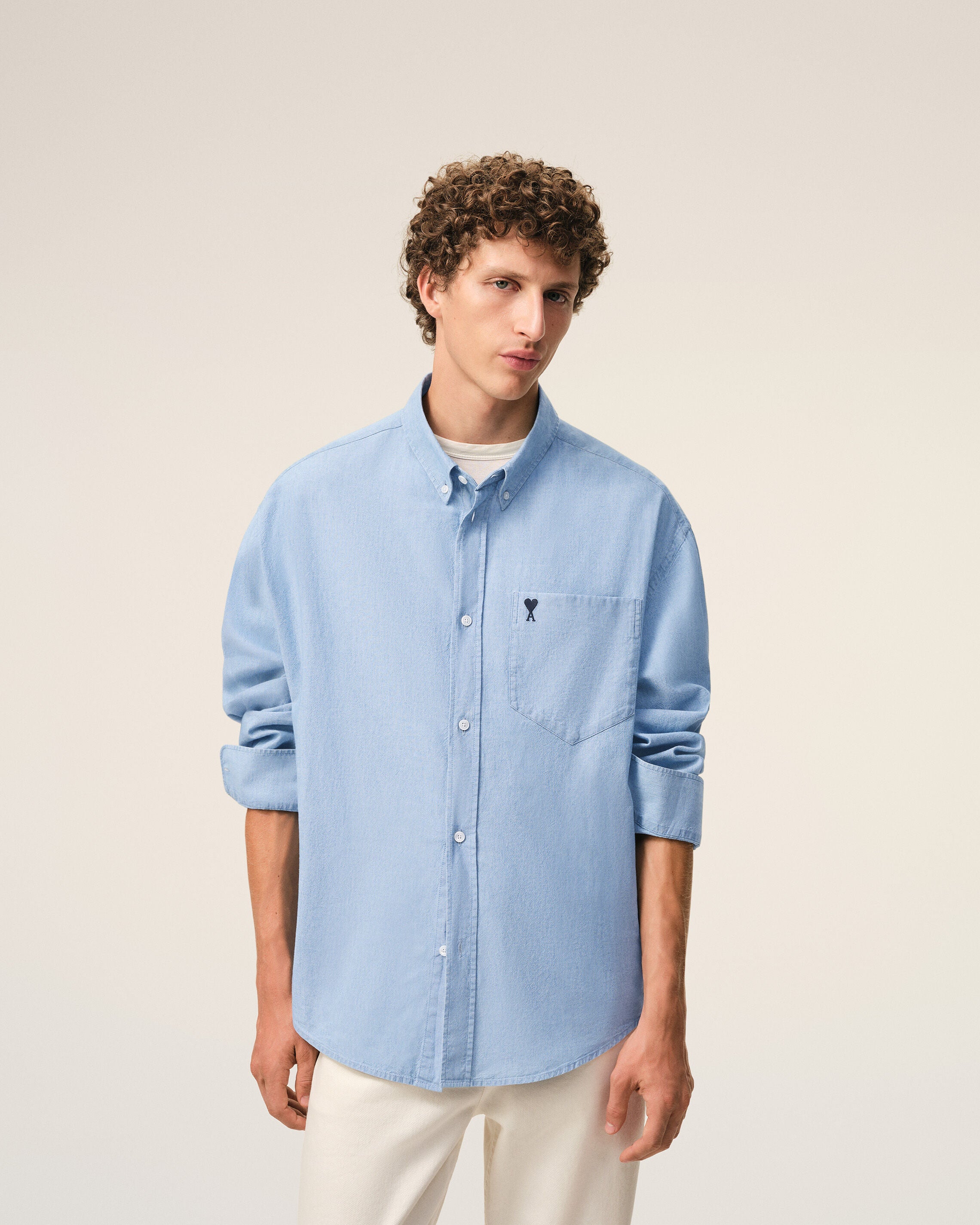 CASHMERE BLUE Blue Cotton Boxy Embroidered Ami De Coeur Shirt | Ami Paris
