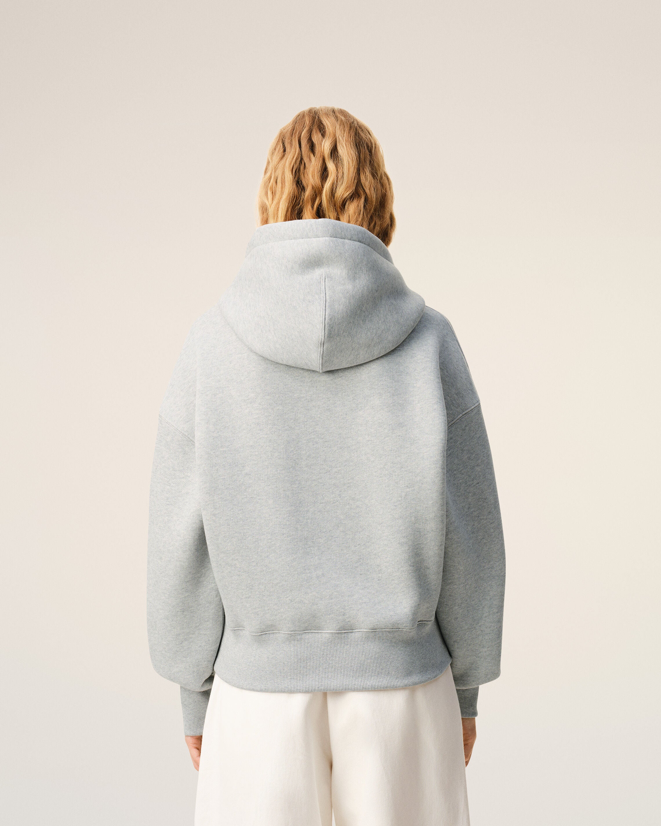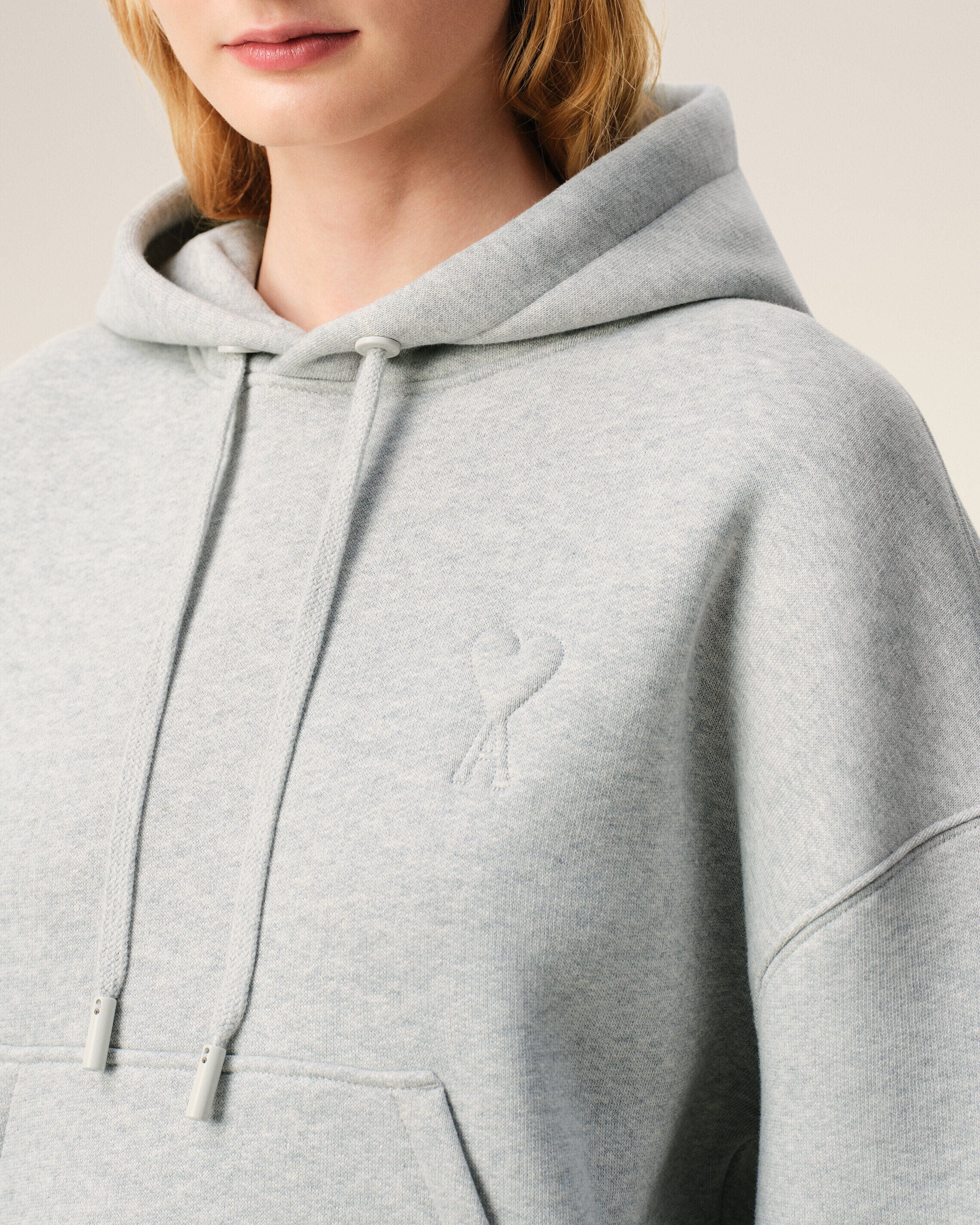 HEATHER ASH GREY Grey Cotton Embossed Ami De Coeur Hoodie | Ami Paris