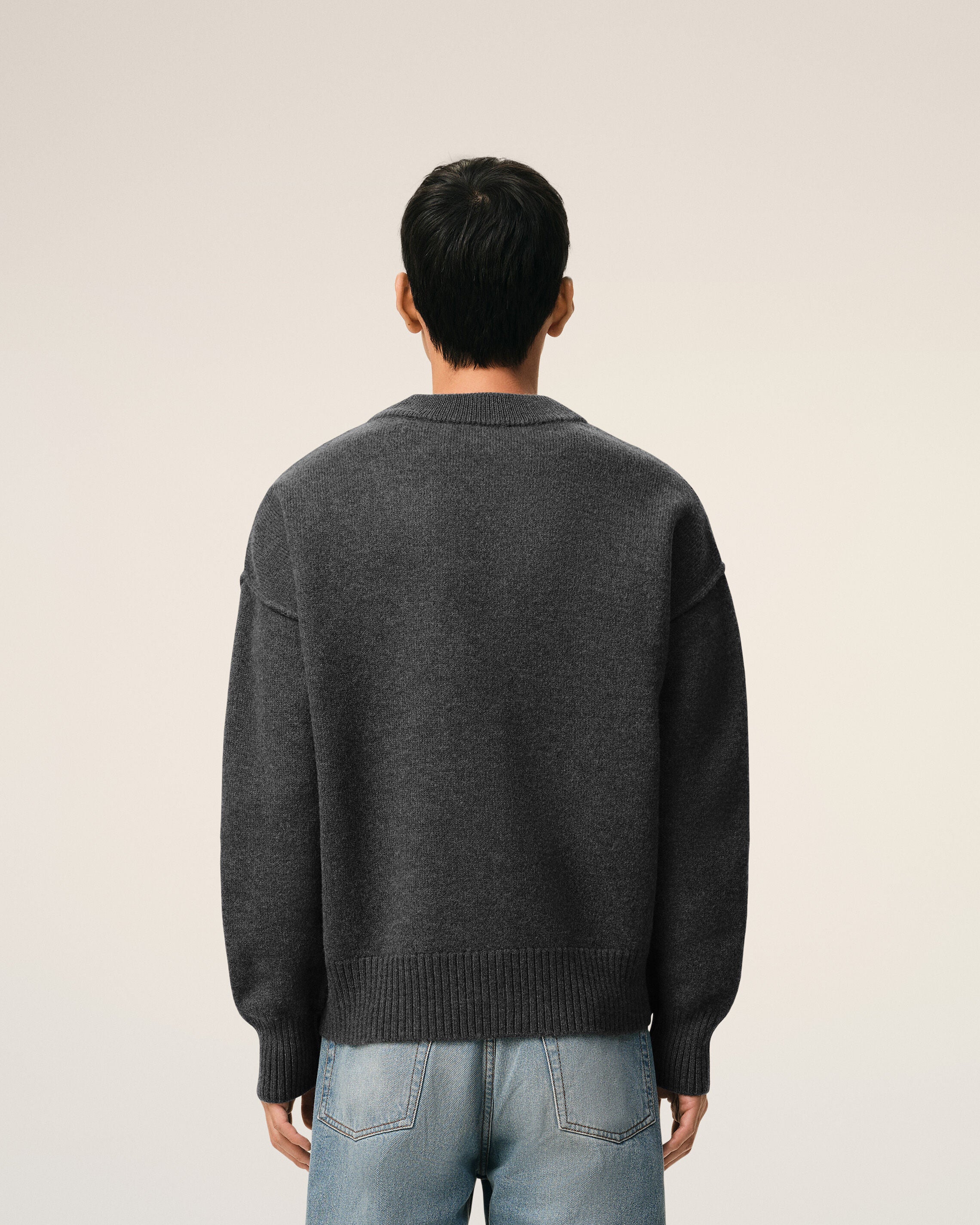 HEATHER GREY / BLACK Grey Wool Ami De Coeur Polo | AMI PARIS