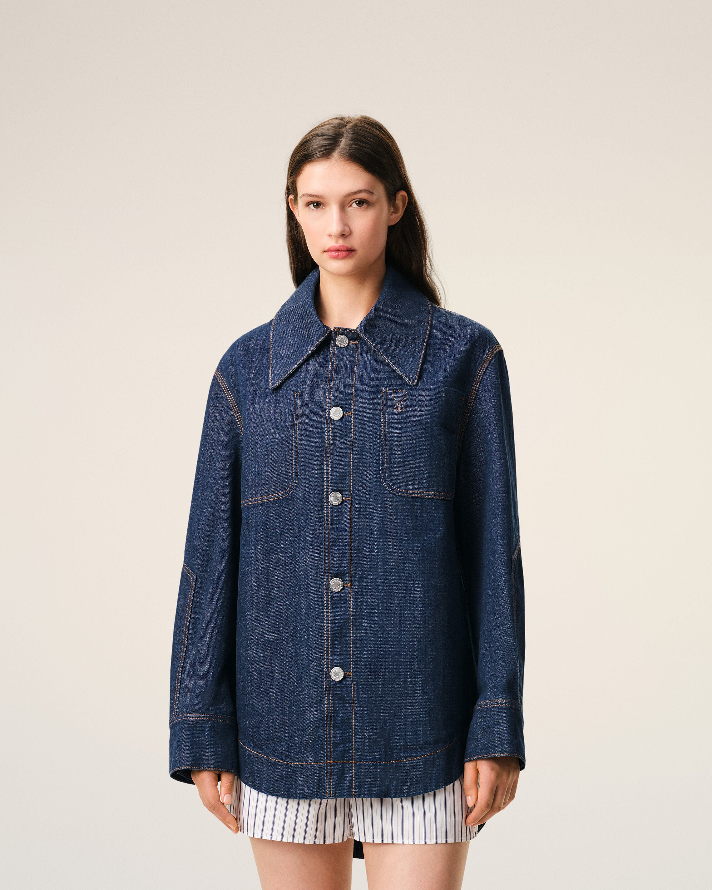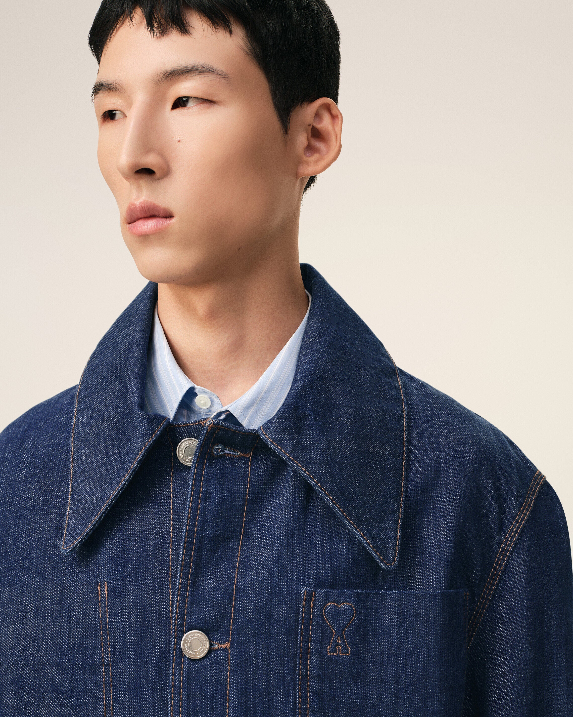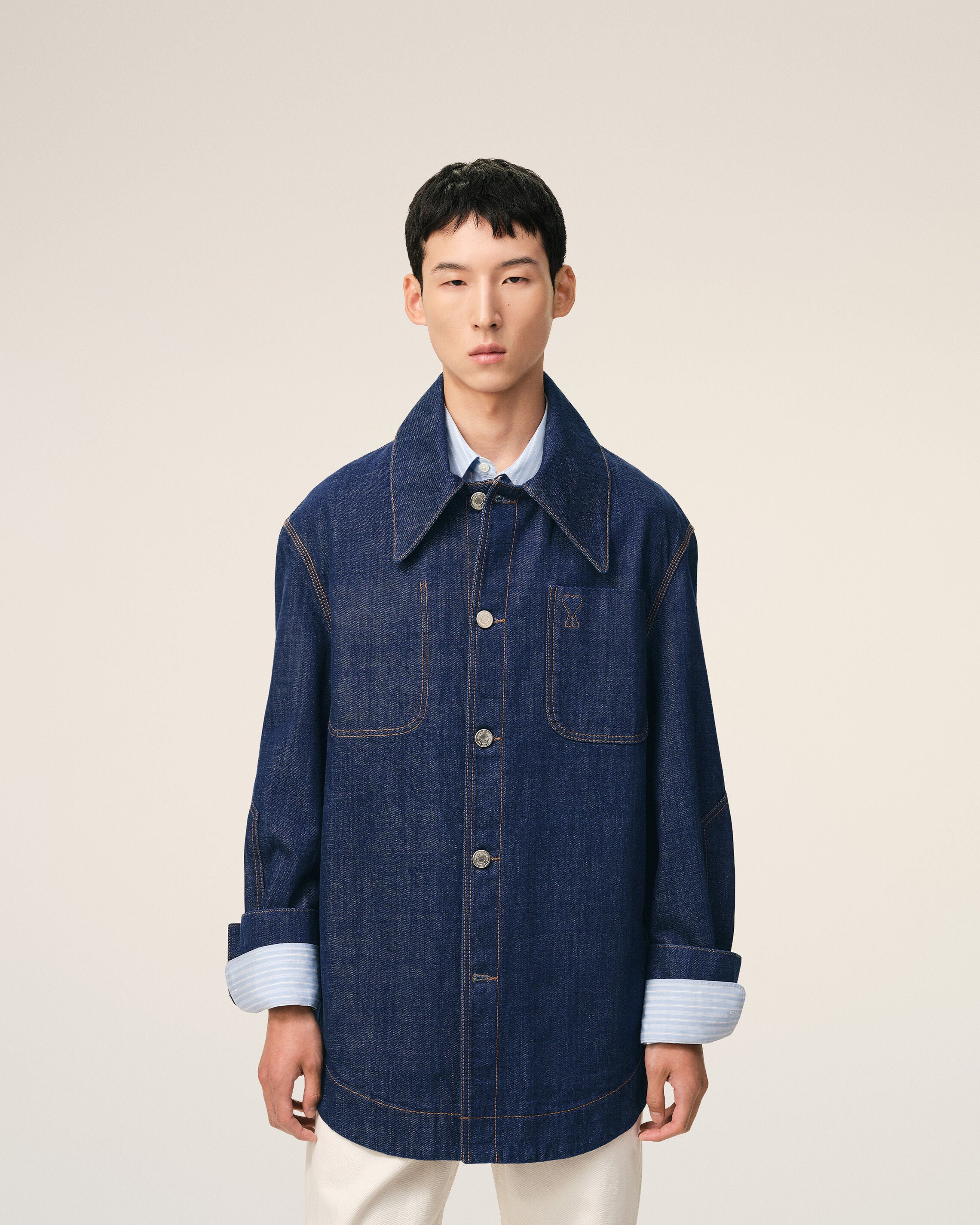 Embossed and topstitched Ami de Coeur on the chest pocket