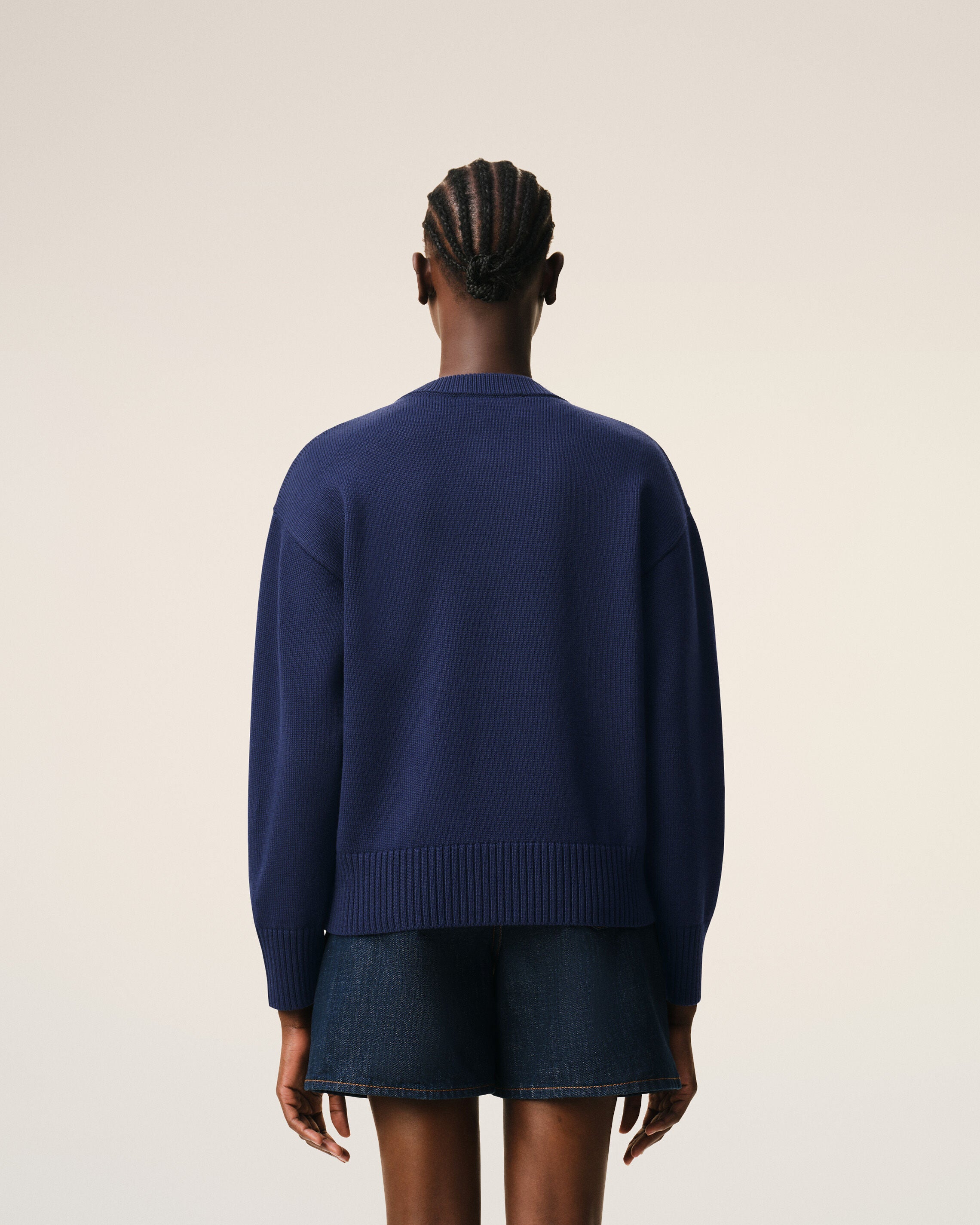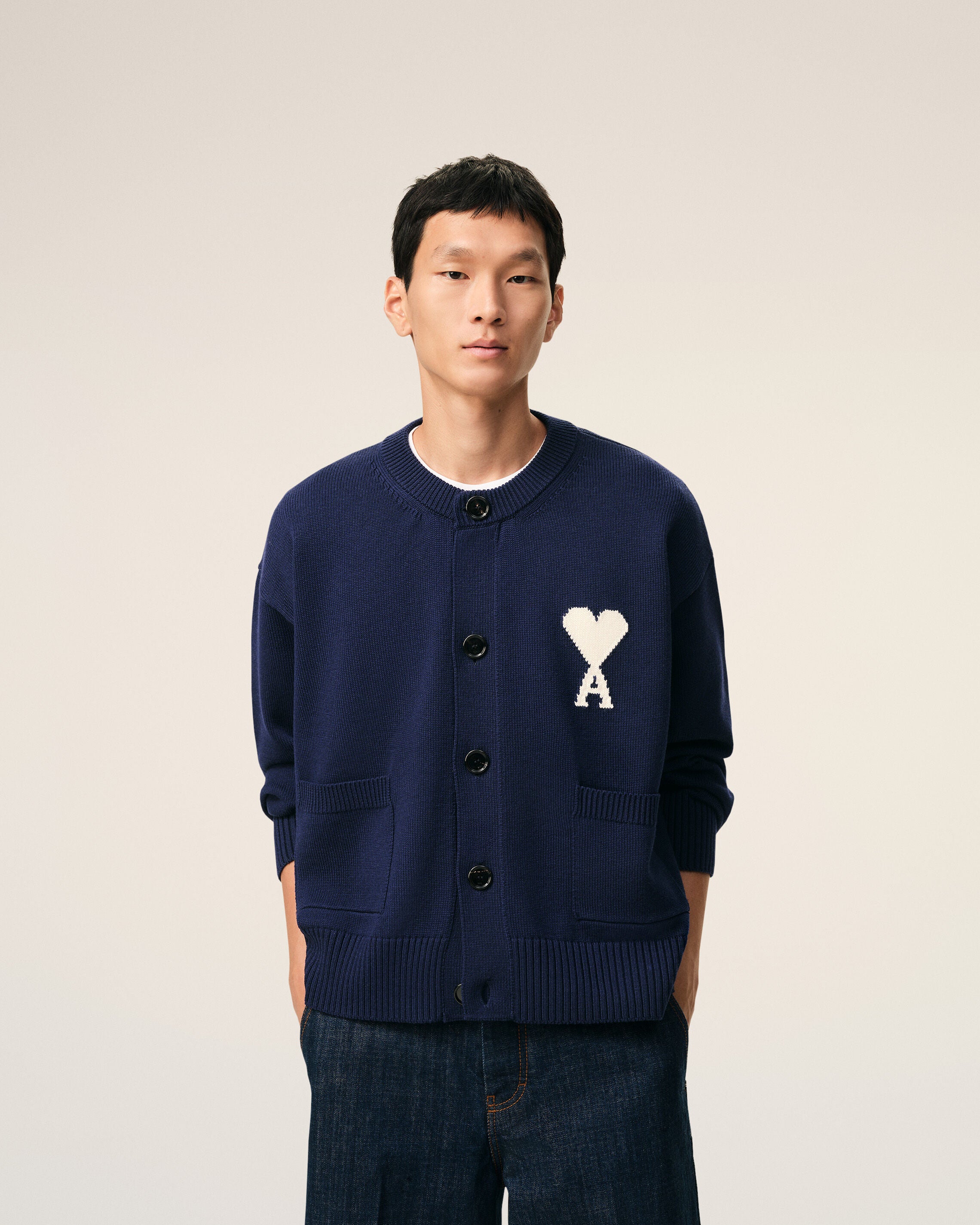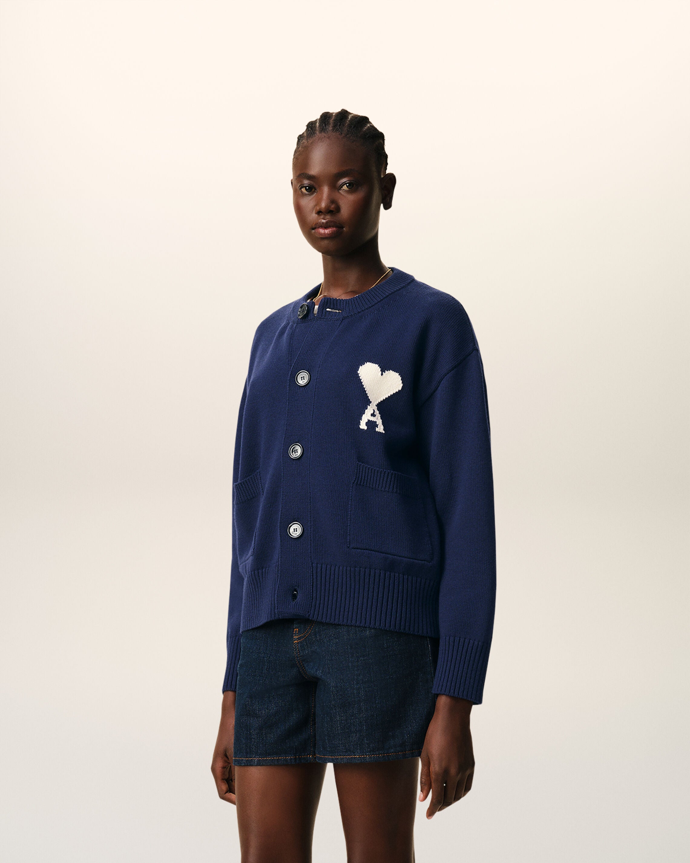 INK/OFF WHITE Blue Wool Crewneck Ami De Coeur Cardigan | Ami Paris
