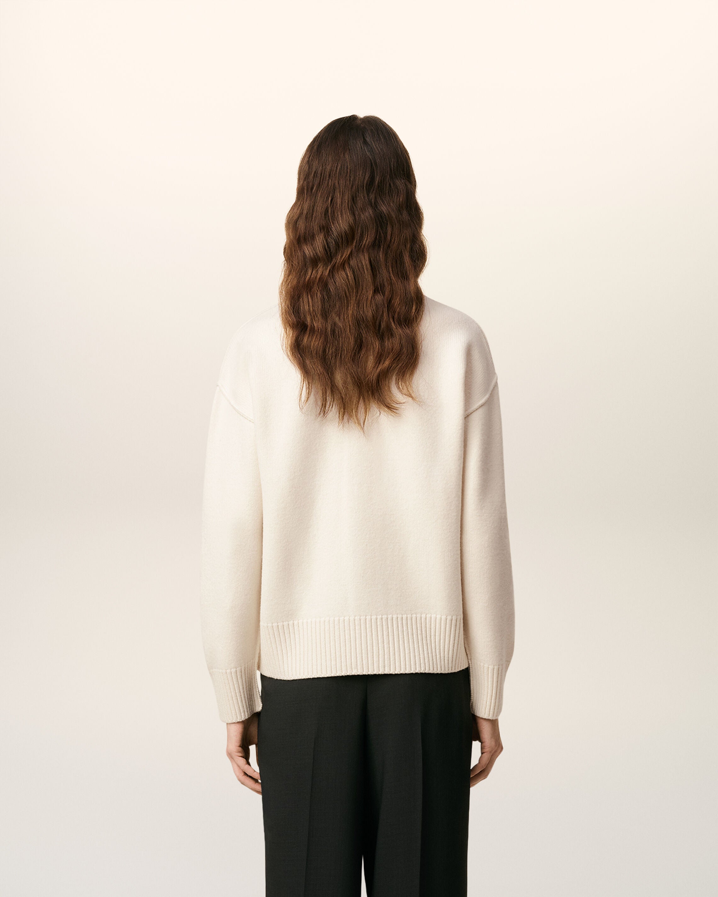 OFF WHITE/ RED White Wool Ami De Coeur Funnel Neck Sweater | AMI PARIS