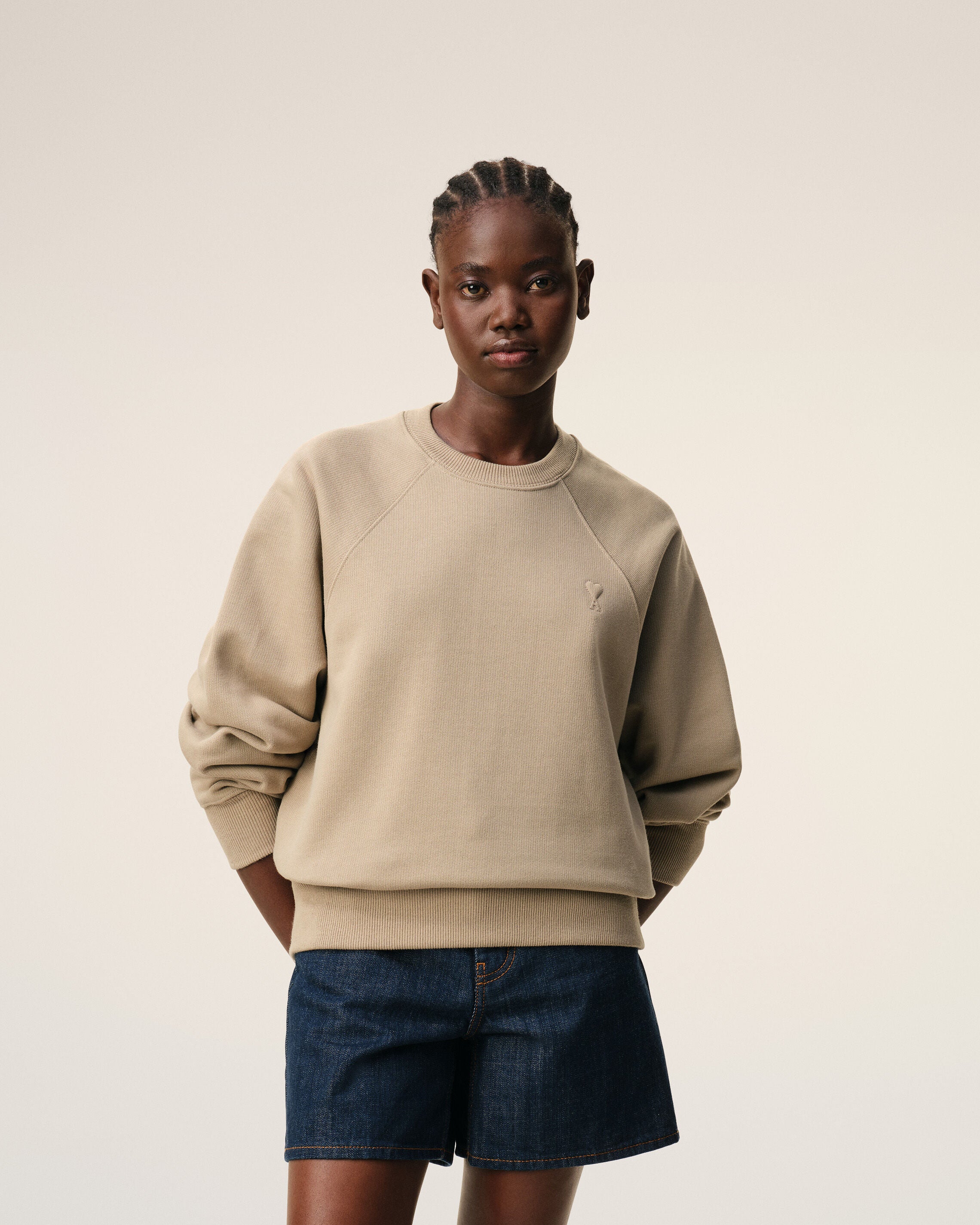 TAUPE BEIGE Beige Cotton Embossed Ami De Coeur Sweatshirt | Ami Paris