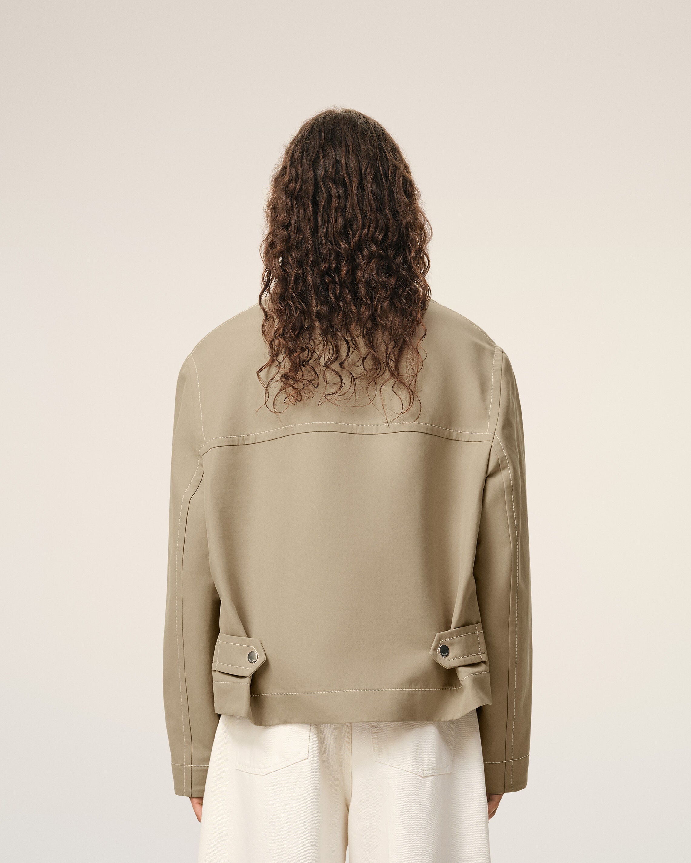 Zipped jacket in double faced cotton gabardine.