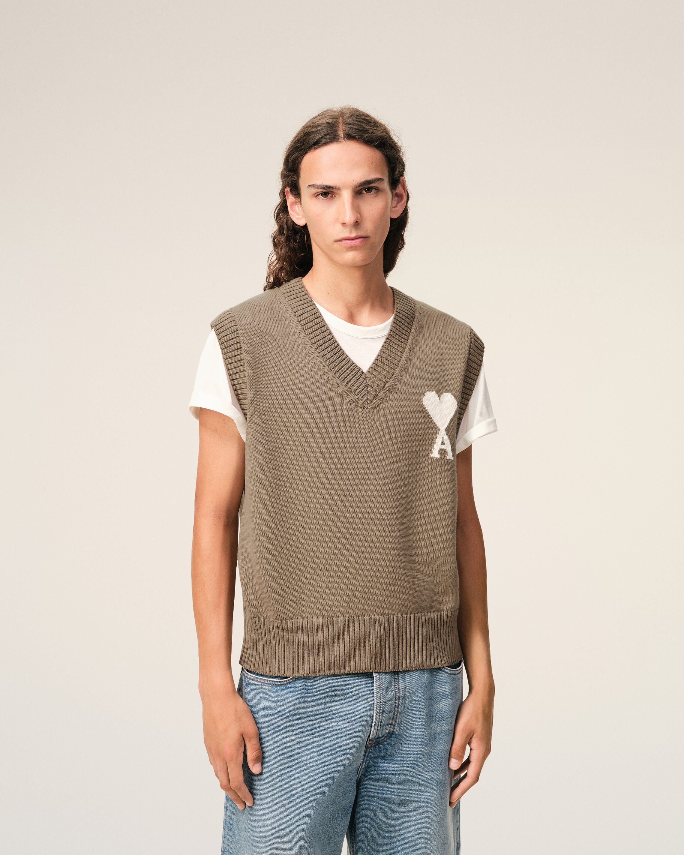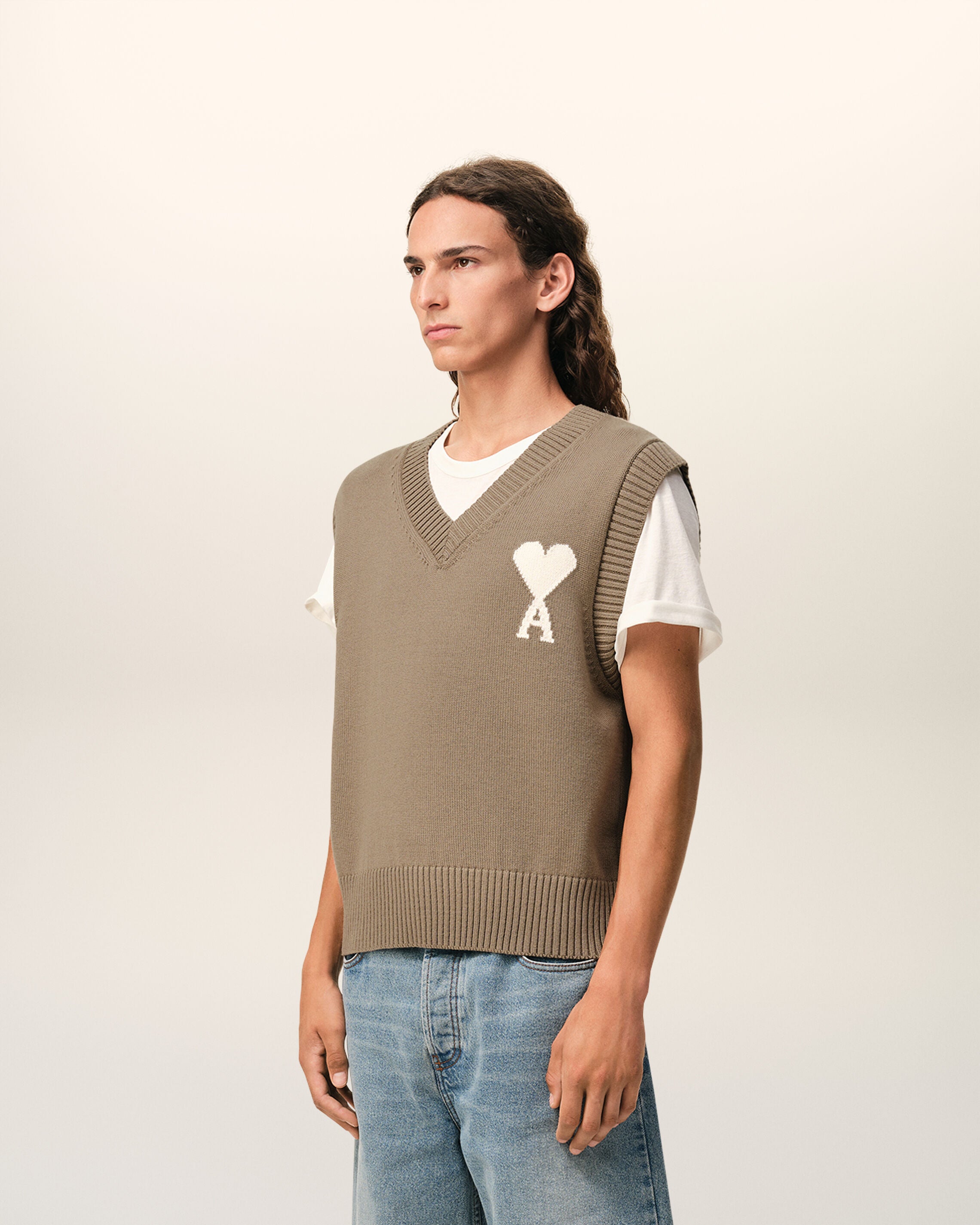 TAUPE BEIGE/OFF WHITE Beige Wool And Cotton Sleeveless Ami De Coeur Sweater | Ami Paris